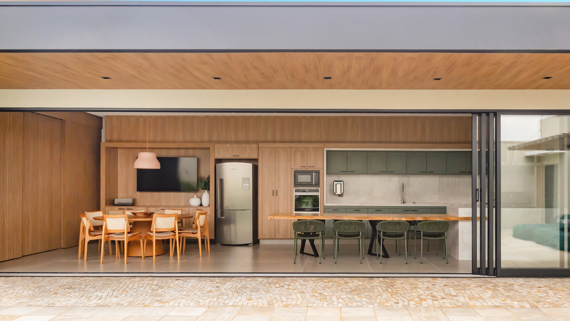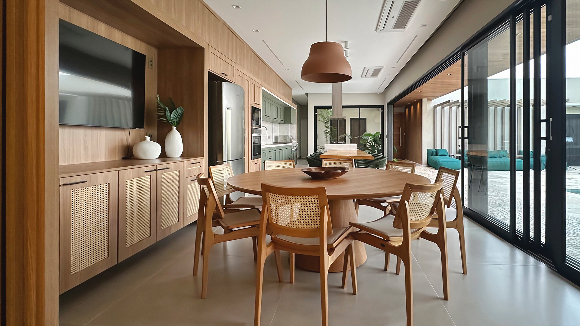 “A casa foi pensada para ser vivida por completo no dia a dia, evitando espaços pouco utilizados e garantindo que cada ambiente tenha propósito. Outra premissa essencial foi criar uma residência naturalmente ventilada e banhada por luz natural, sem renunciar ao conforto térmico em todas as áreas. A escolha dos materiais foi cuidadosamente planejada para construir uma estética atemporal, capaz de manter a casa sempre atual e elegante ao longo dos anos”.