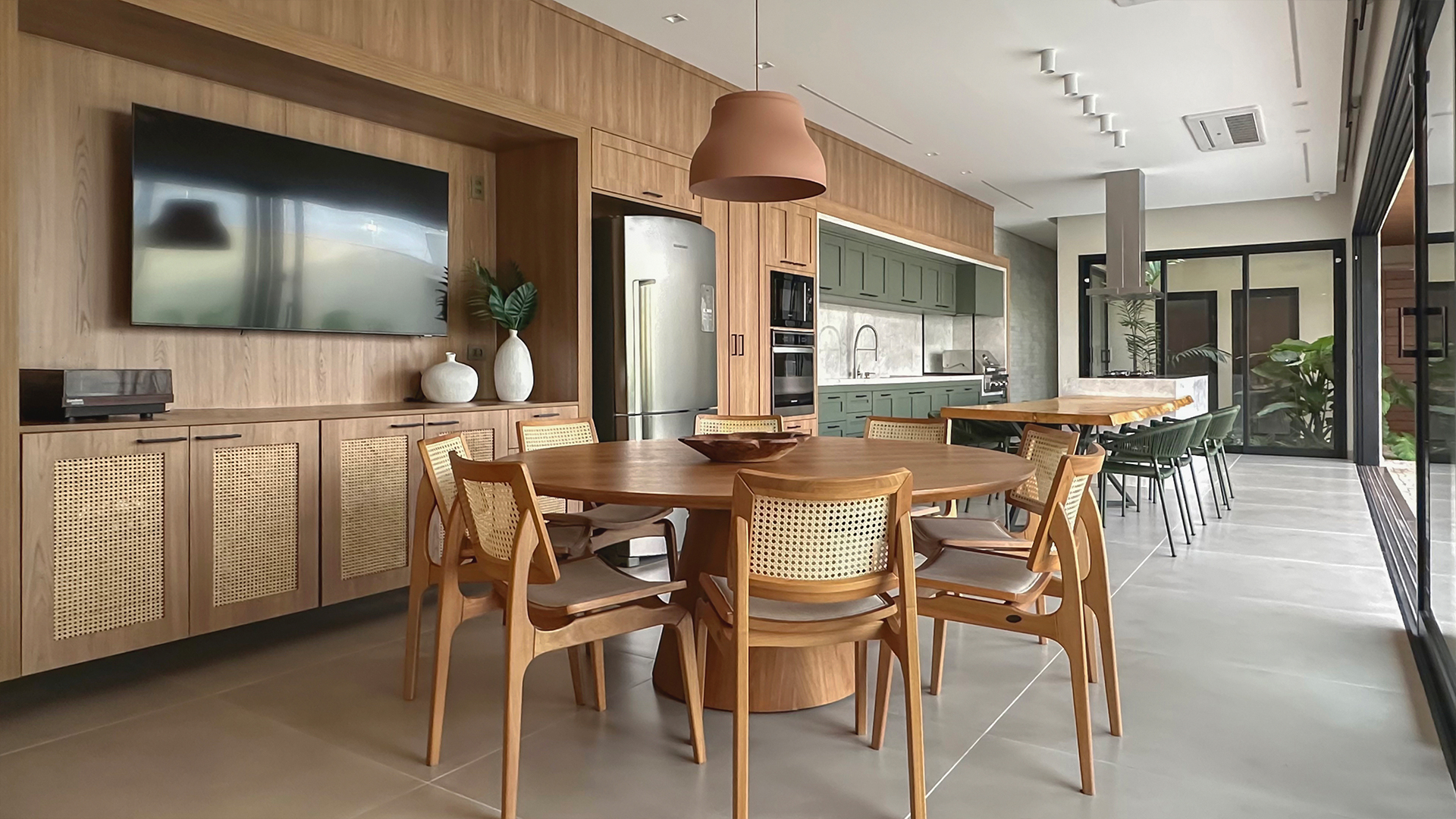 Dentre os diversos projetos assinados pelo escritório nos últimos anos, o projeto em foco é um ambiente residencial de 300 m², localizado na cidade de Batatais e concluído em 2025, cuja proposta, segundo os profissionais, foi promover o sentimento de integração, leveza e atemporalidade.